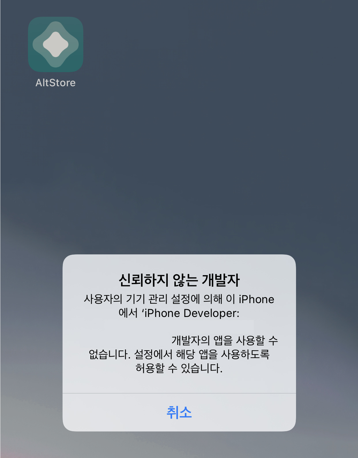 여기서, 알트스토어 설치시 사용했던 것과