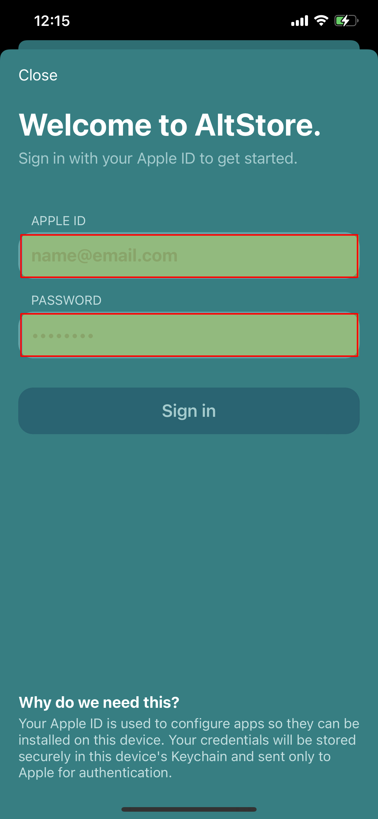 Altsever에서 사용했던 Apple ID / PW를 입력하면