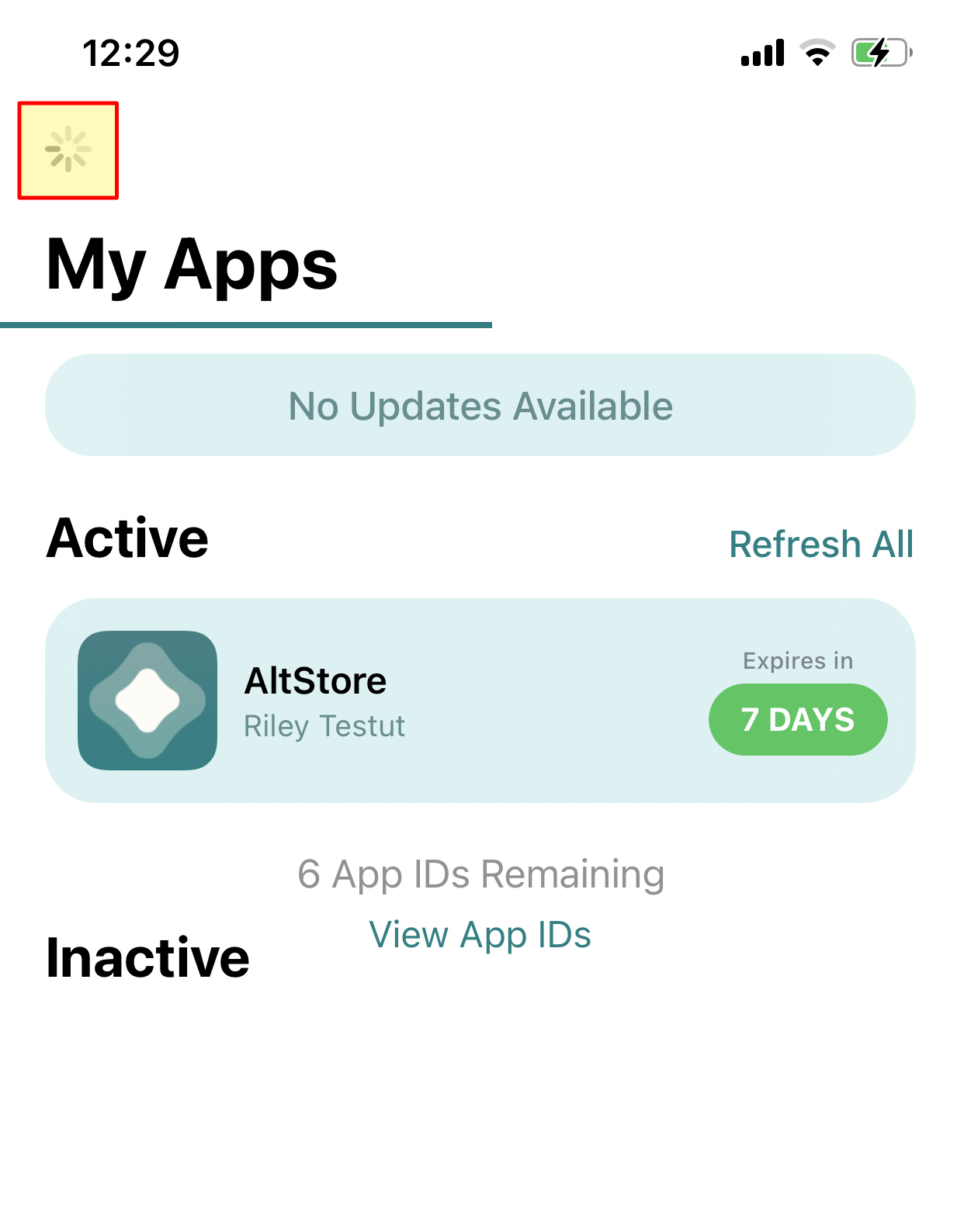 왼쪽 위 로딩표시와 My Apps 하단에